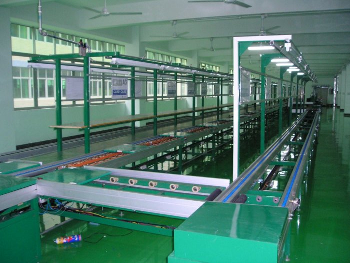 | 流水线是在一定的线路上连续输送货物搬运机械,又称输送线或者输送机。按照输送系列产品大体可以分为:皮带流水线、板链线、倍数链线、插件线、网带线、悬挂线及滚筒流水线这七类流水线。一般包括牵引件、承载构件、驱动装置、张紧装置、改向装置和支承件等。流水线输送能力大,运距长,还可在输送过程中同时完成若干工艺操作,所以应用十分广泛。