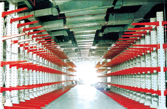 1、悬臂式货架有单臂和双臂之分,高效存储木料、管材、长条物等类似产品。悬臂式货架可由单个立柱片单元配以 悬臂通过水平拉杆、斜拉杆等连续组成多个单元系统。 2、悬臂式货架在质量、安全性和管理方面是行之有效的存储系统。立柱片由立柱和底座构成,立柱由两片特殊设计的C型钢对焊而成,这种结构充分利用材料的抗载容量,有着承载大、造价低的特点。 3、立柱预制双排孔,孔的节距为100mm,悬臂通过板销与立柱连接,可以以100mm为节距上下调节。 |