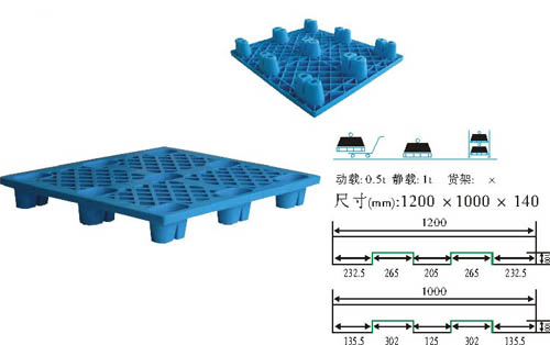 | 塑料托盘(pallet)是为了便于货物装卸、运输、保管和配送等而使用的由可以承载若干数量物品的负荷面和叉车插口构成的装卸用垫板。它是物流产业中最不起眼,却又无处不在的一种物流器具,是静态货物转变为动态货物的主要手段。尽管只有一米见方大小,却“可以移动整个地球”,所以又叫做“活动的地面”、“移动的货台”。